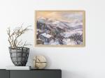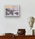 Эта пленэрная работа написана в 2024 году в сердце Сванетии, в Местии. Перед закатом горы окутались мягким светом, и склоны, уходящие вдаль, зазвучали в переливах сиреневых, голубых и золотистых оттенков. На переднем плане — небольшой домик и деревья, укутанные снегом, а вдали — величественные пики, растворяющиеся в закатной дымке. Атмосфера спокойного зимнего вечера наполняет полотно: тишина гор, ощущение защищённости и лёгкая грусть уходящего дня. Картина создаёт настроение уюта и гармонии и будет особенно хороша в гостиной, кабинете или в интерьере альпийского шале, добавляя пространству теплоту и красоту горных пейзажей.