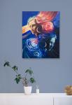 Эта акриловая картина размером 40 50 см предлагает яркую, эмоциональную интерпретацию Близнецов, знака двойственности и двойных энергий. На картине изображены два женских лица, возникающих из бурлящего космического потока цвета и света. Одно лицо написано в тёплых, сияющих оттенках — золотом, персиковом и насыщенном розовом, — символизирующих яркую, экспрессивную сторону Близнецов. Другое лицо — в холодных синих и глубоких фиолетовых тонах, олицетворяющих самоанализ, интуицию и скрытую от глаз сторону двойного зодиака.