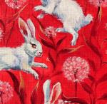 Белые кролики на красном фоне. Картина в раме