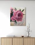 Нежный розовый пион в прозрачном стакане олицетворяет красоту и утончённость природы. Его шелковистые лепестки словно наполнены светом и свежестью, а капельки росы придают изображению живость и трепет. Мягкие переходы оттенков розового, пурпурного и зелёного создают гармонию и лёгкое романтическое настроение. Эта картина приносит в интерьер ощущение спокойствия, чистоты и вдохновения.