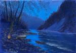 Вечереет. Лодка уже на берегу, костёр разгорается у самой воды, а в небе — предрассветная синева. Картина запечатлевает мгновение остановки среди пути, когда человек остаётся один на один с природой: горами, рекой и звуками леса. Мягкое сияние воды и мерцание огня создают атмосферу уюта в центре дикого и прекрасного дальневосточного пейзажа. Это не просто этюд — это воспоминание о сплаве, о движении и покое.