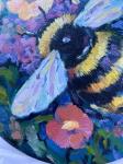 Эта очаровательная круглая картина маслом на холсте на картоне диаметром 18 см изображает нежную сцену с пчелой, порхающей среди ярких цветочных лепестков. Теплые и сочные оттенки создают ощущение летней свежести и природной красоты. Отлично подойдет для украшения интерьера. Продается без рамы!