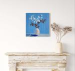 Ключевые слова: искусство для интерьера вдохновлено природой элегантный декор картина с цветами 40x40 см настенное искусство декор для дома натюрморт ботаническая живопись цветочный декор картина акрилом ветка белая орхидея синий фон