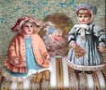 Символика: антикварные куклы,фарфор, старина, сказки, кружева, гравюра, бежевый, перламутровый, розовый, копия картины
