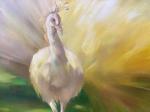 Техника нанесения Вся картина написана широкими, смелыми мазками, наполнена светом и энергией жаркого дня. Это гимн жизни, красоте и щедрости природы. Художник не просто изобразил птицу в саду — он поймал сам дух полдня: яркий, сонный, благоухающий и по-царски величественный в своей праздности.лесировка масляных красок, с использованием различных кистей для создания текстуры и глубины.