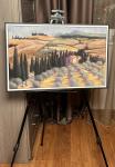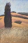 «Тосканские истории (3)» передают тёплые, плавные ритмы тосканской сельской местности через мягкий, фактурный язык пастели. Изысканная палитра Натальи Балашовой — золотистые поля, приглушённой оливы и насыщенные вечнозелёные кипарисы — вызывает ассоциации с предвечерним светом и тихой жизнью оливковых рощ и загородных вилл. Композиция гармонично сочетает в себе широкие виды и тесные ряды деревьев, делая эту пастельную картину одновременно атмосферной и декоративной.