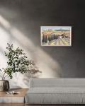 • Сочетайте картину с тёплой деревянной мебелью или нейтральной обивкой, чтобы подчеркнуть золотистые тона картины. • Создайте эффектную виньетку над консолью, в кабинете или столовой, чтобы подчеркнуть пейзажную историю.