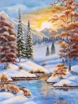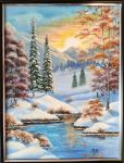 Ключевые слова: Интерьерная картина, зимний пейзаж, сказочный закат, лесной ручей, красота природы, интересная работа художника, пейзаж акрилом