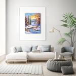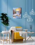 Интерьерная картина «Выпал снег…». Последними теплыми лучами солнца озаряется живописная опушка зимнего леса. Стройные, покрытые снегом ели гордо возвышаются над белоснежным покровом земли. Свет вечернего солнца мягко ложится на сугробы, создавая волшебную игру света и тени. Чистая вода лесного ручья, ещё не успевшего покрыться льдом, зеркально отражает величественный пейзаж вокруг, придавая картине особую гармонию и спокойствие. Этот зимний пейзаж словно из сказки, он наполнен атмосферой умиротворенности и спокойствия, вдохновляя зрителя задуматься о красоте природы и её способности создавать удивительные образы даже в холодное зимнее время.