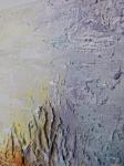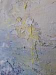 Рельефная поверхность и поверхностные мазки, выполненные руками, создают живую, тактильную фактуру. Следы жестов остаются видимыми, но сдержанными, усиливая ощущение естественности и замедления. Работа воспринимается как спокойный ландшафт без конкретных очертаний — пространство для созерцания и внутреннего покоя.