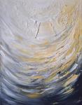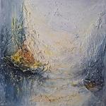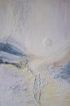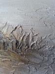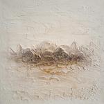 Фактурная картина передаёт образ горного хребта, растворяющегося в снежном тумане. Сдержанная светлая палитра, нюансы белого и тёплого бежевого создают ощущение тишины и глубины пространства. Рельефные формы вырастают из поверхности холста, словно скалы, покрытые лёгким припылением снега и воздуха. Золотистые акценты добавляют тонкое внутреннее свечение и подчёркивают линию горизонта. Работа наполнена ощущением покоя, медленного дыхания природы и созерцательного состояния.