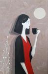 На картине изображена женщина, погружённая в тихий момент уединения. Её жест с чашкой — неспешный, почти медитативный — становится символом внутренней паузы, когда внешний мир отступает, уступая место чувствам и мыслям.