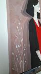 Лаконичная композиция и сдержанная цветовая палитра с акцентом на глубокий чёрный и насыщенный красный создают ощущение сосредоточенности и внутреннего тепла. Мягкий фон с фактурными мазками добавляет работе глубины и тактильности, усиливая атмосферу тишины и покоя.