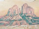 Картина переносит нас в сердце Аризоны, к знаменитым скалам Седоны. Густые, фактурные мазки мастихина создают почти осязаемое ощущение раскалённого камня и мягкого марева пустыни. Нежная пастельная палитра — от пудрово-розового до бирюзового — превращает суровый горный пейзаж в умиротворяющий мираж. В центре композиции — величественная Кафедральная скала, чьё отражение в воде кажется зыбким и призрачным, словно застывшее мгновение тишины