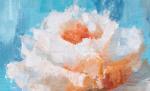 Ключевые слова: интерьерная картина современная живопись декоративное искусство яркая живопись солнечная картина сочные мазки фактура натюрморт персиковый оранжевый голубой фон контраст фовизм пастозная техника масло белая роза цветы роза