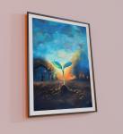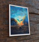 На переднем плане — хрупкий зеленый росток, пронизанный светом заката. На горизонте — дома, охваченные огнем, и небо в дыму. Художник использует эффект живописного боке, чтобы сделать росток главным героем, а трагедию — размытым, но ощутимым фоном. Это притча о жизни, которая всегда находит путь, даже когда вокруг хаос. Масляная пастель создает плотную фактуру земли и нежную графичность растения. Работа для тех, кто ищет в искусстве не просто украшение, а сильный эмоциональный и философский резонанс. Для кабинета или студии, где важны смыслы.