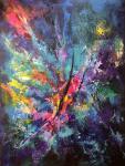 Эта энерго-картина – это глубокое погружение в вибрирующую стихию цвета и света. Яркие всплески бирюзы, изумрудной зелени и насыщенного оранжевого переплетаются с глубокими оттенками синего и фиолетового, создавая богатую, многослойную текстуру, где каждый мазок несет собственную историю и динамику. Работа приглашает зрителя ощутить живое дыхание природы, энергию пробуждения и игру света в первозданной чаще. Это полотно – медитация на жизненную силу, стихийное движение и внутреннее сияние, которое активизирует чувства и наполняет пространство чистой, нефильтрованной энергией.