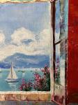 Картина маслом на холсте. Шартаева Ляззат. Вид на море с открытого балкона