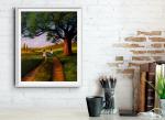 На картине изображён простой, но полный жизни момент: прогулку в лесу после семейного чаепития с бабушкиными пирогами. Масляные краски создают мягкую, живую фактуру листвы, передают игру света в ветвях и ощущение свободы, которое дарит природа. Сочные зелёные тона, тёплые оттенки земли и нежные акценты цветов складываются в гармоничную палитру, которая вызывает чувство покоя и радости. Картина - воспоминание, которая напоминает о важности простых моментов, общений с близкими и единении с природой. Она не просто украшает пространство, но и наполняет его эмоциональным теплом, ностальгией и радостью жизни.