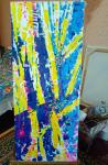 Контрастные вертикальные формы и направленные цветовые потоки создают ощущение пересечения траекторий. Работа исследует тему выбора и движения во времени через напряжённый ритм цвета и структуры. Композиция выстроена как динамическое столкновение направлений, где абстрактное поле удерживает внутреннюю драматургию.