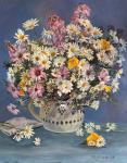 Натюрморт с букетом полевых цветов и яблоками. Работа написана маслом на холсте, в стиле реализма.