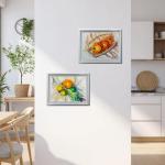 Так и хочется замешать из них витаминный бодрящий смуззи. Картина в жёлтых и зеленых тонах станет яркой и энергичной деталью в интерьере кухни, обеденной зоны или гостиной, придаст теплого света и солнечного настроения любителям здорового образа жизни.