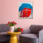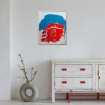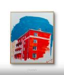 Ключевые слова: конструктивизм, красный, стимпанк, Москва, улицы города, бежевый , синий, небо, архитектура, дом, школа, детство, ностальгия, сталинка, хрущевка, брежневка, панелька, стимпанк романтика, картина для гостиной, московский дворик, небо, солнце, март, весна,