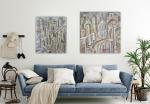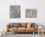 Ключевые слова: Акрил на холсте, кубизм, серо-бежевая палитра абстрактный городской пейзаж, подарок жене