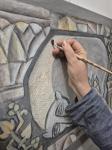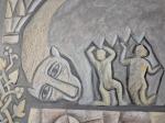 Картина вдохновлена девним барельефом этрусков и символизирует легенду об основании Рима, в которой повествуется о волчице выкормившей основателей города и ставшей главным его символом, олицетворяя воинственность,материнскую заботу и дикую природную силу из которой вырос великий город.Древность ,архаика подчеркнута текстурой картины исдержанной гаммой серо бежевых тонов