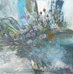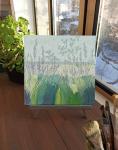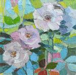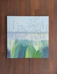 Ключевые слова: лето утро нежный холодный пастельные тона квадрат цветы травы минимализм импрессионизм декоративный импасто мастихин масло зеленый голубой синий пейзаж поле