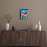 Оригинальная акриловая картина с образом красной лошади, стоящей среди цветущих растений, камней и небольшого ручья. Работа выполнена в стиле современного народного и наивного искусства с упрощёнными формами, декоративной листвой и стилизованными цветами. Яркие, но гармоничные цветовые сочетания создают спокойную и немного сказочную атмосферу. Небесно-голубой фон и мягкий розовый горизонт усиливают ощущение света и пространства. Картина станет выразительным акцентом в современном или бохо-интерьере.