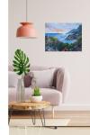 Такой морской пейзаж станет ярким окном в лето для вашей гостиной или спальни. Сочные оттенки лазури и зелени визуально расширяют пространство и добавляют комнате свежести и тепла.