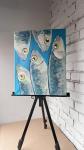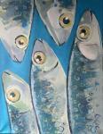 Общее впечатление: Картина сочетает в себе элементы реализма и абстракции. С одной стороны, формы рыб узнаваемы, с другой — декоративные детали и свободная манера письма делают работу оригинальной. Работа может вызывать ассоциации с подводным миром, но благодаря выразительным глазам рыб приобретает чуть ироничный, даже антропоморфный характер. Картина выглядит ярко, энергично и привлекает внимание своей художественной смелостью.