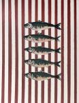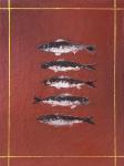 На картине изображены пять рыб, выполненных в выразительной, слегка абстрактной манере. Композиция построена вертикально: рыбы расположены близко друг к другу, их головы и тела частично перекрываются, что создаёт ощущение динамики и единства группы.