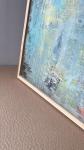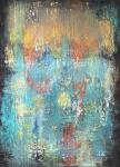 Абстрактная картина акрилом: композиция без чётких сюжетов, где художник играет с цветом, текстурой и мазками. Доминируют холодные оттенки бирюзового и голубого, дополненные тёплыми акцентами оранжевого, жёлтого и красного — они создают динамику на фоне спокойствия. Серые и чёрные участки придают драматичности, а зелёные акценты балансируют композицию. Текстура рельефная, с явными следами кисти/шпателя — это добавляет «живости»; мазки разнонаправленные, с наслоениями, создающими глубину. Композиция без чёткого центра: взгляд блуждает между яркими пятнами и текстурными контрастами. Распределение цветов сбалансировано, но асимметрично; тёмные края обрамляют светлую центральную зону.