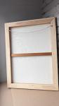 Рама — простая, деревянная, светлого оттенка, подчёркивает полотно, не отвлекая внимания. Прямоугольная, с тонкими бортами, выполнена в минималистичном стиле; гармонирует с тёплыми тонами картины и нейтральным фоном помещения.