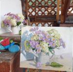 Ключевые слова: Натюрморт, цветы, гортензия, хризантемы, пастельные тона, сиреневый, спокойствие, нежность