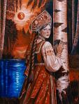 Ключевые слова: славянское искусство русская народная живопись портрет в кокошнике славянская мифология традиционный русский костюм славянская девушка красная луна восточноевропейское искусство оригинальная картина маслом