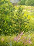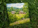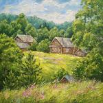 Ключевые слова: деревня, лес, дом, холм, лето, мастихин, 30х30, сельский пейзаж, уединение