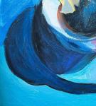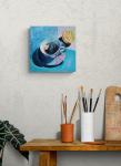 Композиция минималистична и построена на балансе форм и цвета. Холодные голубые оттенки сочетаются с тёплыми жёлтыми акцентами, создавая ощущение свежести и мягкой тишины.