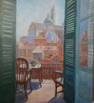 Фантазия. Вид с балкона на Сиену. В стекле балконной двери отражается идеальный город Амброджо Лоренцетти
