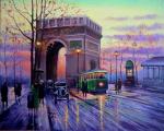вечер, закат, трамвай, люди, ретро, город.