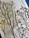Используется техника рельефного слепка живых растений с последующей росписью акварелью.