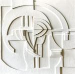 • Фанерный планшет, драпировка из ткани, многослойное укрепление гипсом и рельефными пастами, акрил (тёплый белый–ivory), 2025