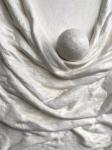 Эта работа началась с шара — первоосновы, из которой родилась вся композиция. Именно он раздвинул складки драпировки, заставив их течь и изгибаться, словно ткань, скрывающая в себе тайну. Так возник образ, где гладкая сфера противопоставлена мягкой игре линий, а покой соединяется с движением.
