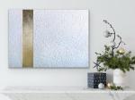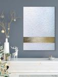 Лаконичная композиция смотрится элегантно и стильно: сочетание белого и золота — символ гармонии, чистоты и благородства. Работа выполнена в духе современного минимализма, при этом фактурность поверхности добавляет ей глубины и выразительности.