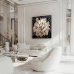 Золото здесь символизирует жизненную энергию и внутреннее сияние. На контрасте с глубоким чёрным фоном оно подчёркивает красоту равновесия — между мягкостью и силой, светом и тенью.