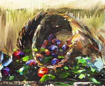 Родригес Хосе. Богатый урожай. Сливы в корзине (Богатый натюрморт)