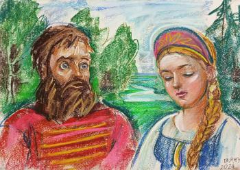 Кожин Семён. Иллюстрация с сказке Братьев Гримм Рапунцель. Принц и Рапунцель у замка (Иллюстрации На Заказ)