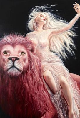Данкова Алёна. Девушка и розовый лев (Интерьерная Картина Лев)